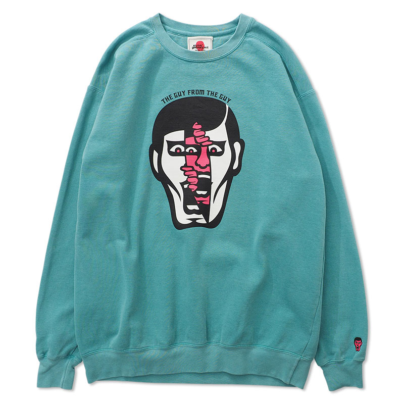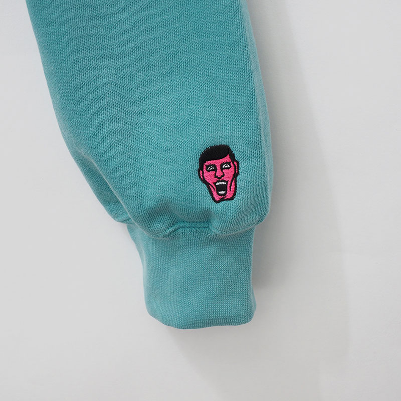 ブランドのキャラクターである「あいつ」の中から「あいつ」が出てきているインパクトの強いトレーナーになっています。袖口にも「あいつ」の刺繍がワンポイントで入っていて遊び心ある一着となっています。