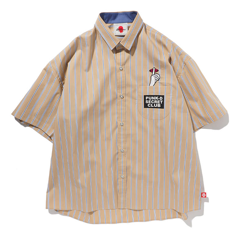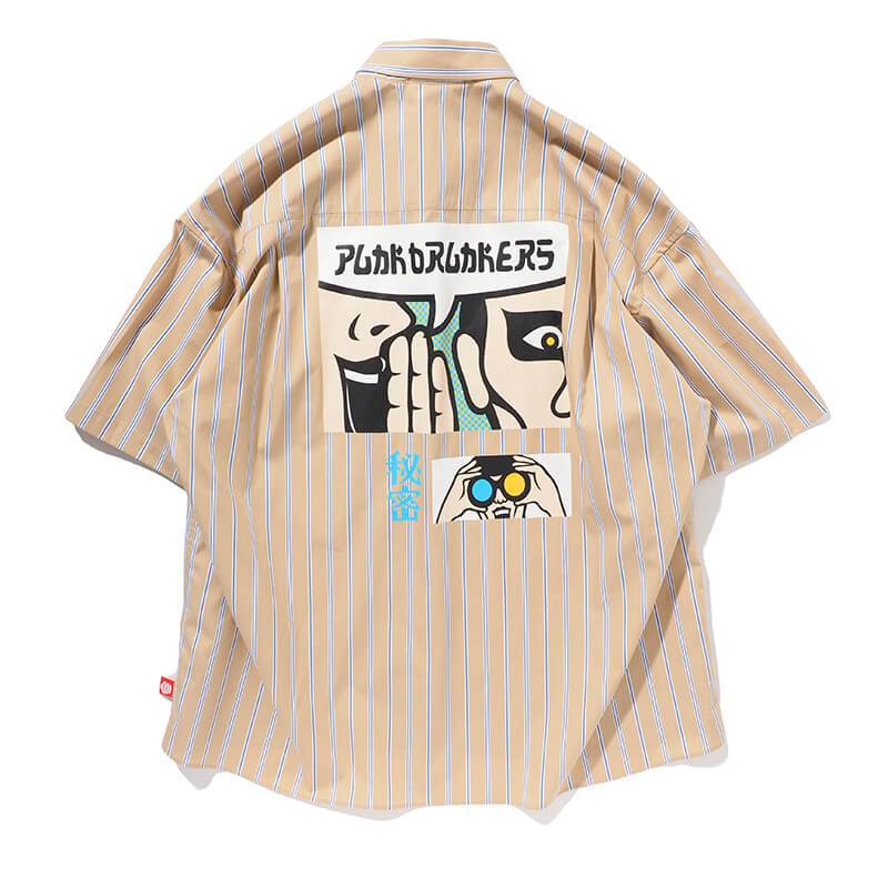 ストライプを基調としたシャツにバックプリントに「あいつ」が登場しています。プリントされている文字がアムカK?と最初なんだ?となったんですが、PUNK DRUNKERSと書かれてますねwこのシャツにも「秘密」と漢字が出てきてますね!