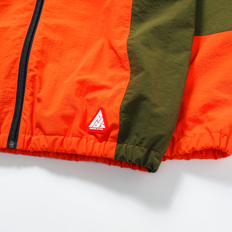 シワ加工の入ったナイロン生地のパーカになります。さっそく漢字が入ってるんですが、ポップなデザインとカラーでかなりオシャレなアイテムになってます。